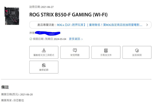 2021年6月購買,有登錄5年保,所以應該保固到2026,不過查詢是到2024