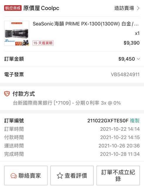 標題[ 賣/全國/皆可]SeaSonic Prime PX1300 白金電