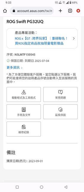 2.去年七月購買 三年保固盒裝都在