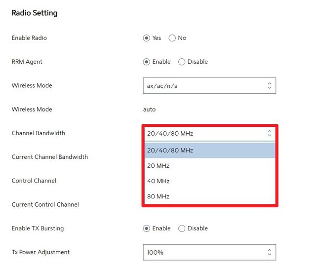 設定介面上wifi6只有80Mhz,沒有160Mhz