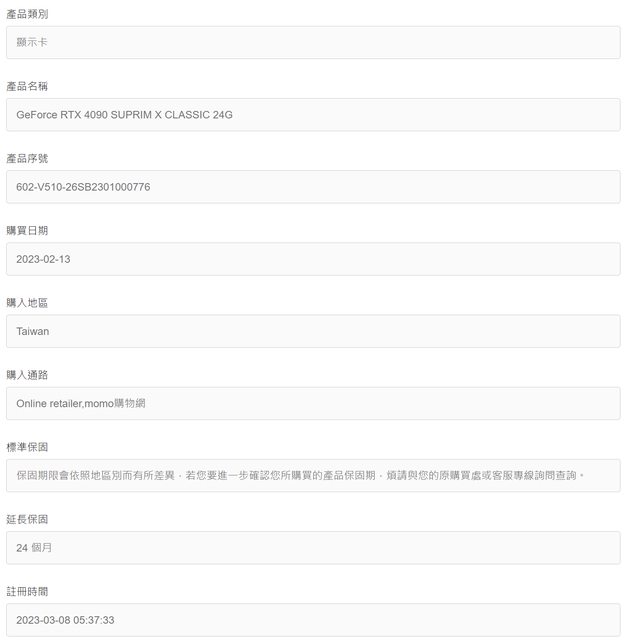 今年2月購買,已註冊延長保固。