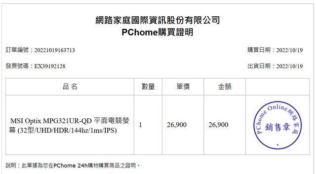 ◎硬體型號: MSI Optix MPG321UR-QD