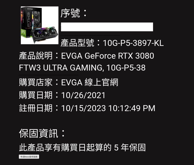 標題[賣/台南/皆可] EVGA GeForce RTX 3080 FTW3 ULT
