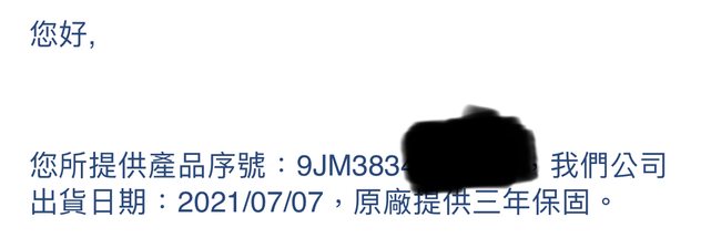 2022年3月購入,經詢問威健保固至2024/7