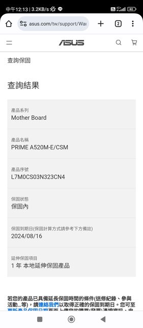 除主機板(有擋板)保固到24年8月16日,其他均過保。