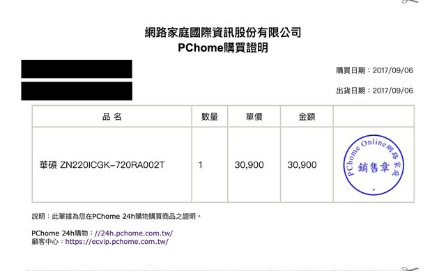 購買證明擷圖(遮蔽出貨單號與發票號碼)