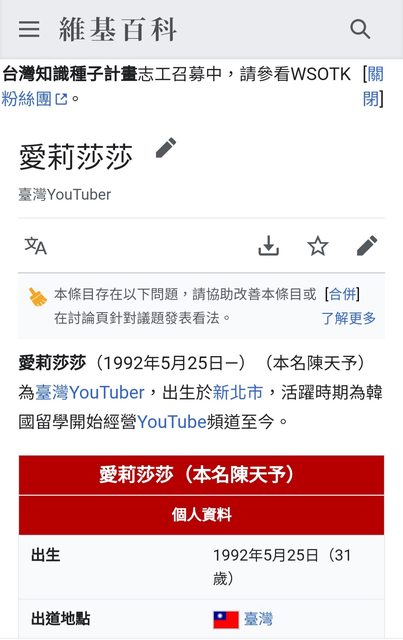 愛莉莎莎這種咖,不認識的人看到新聞,肯定先維基一下