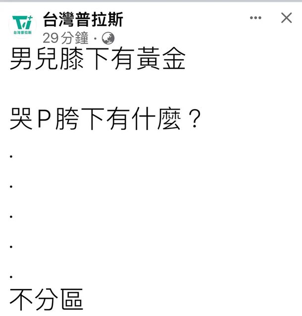 "男兒膝下有黃金 阿北胯下有不分區"
