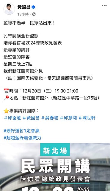 推 LeeSeDol: 黃國昌真的超會抹 116.89.138.235 12/19 12:46