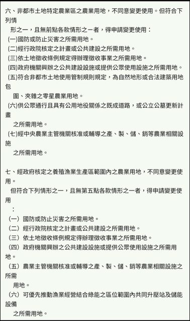 因為按照特定農業區使用規範第六條來說