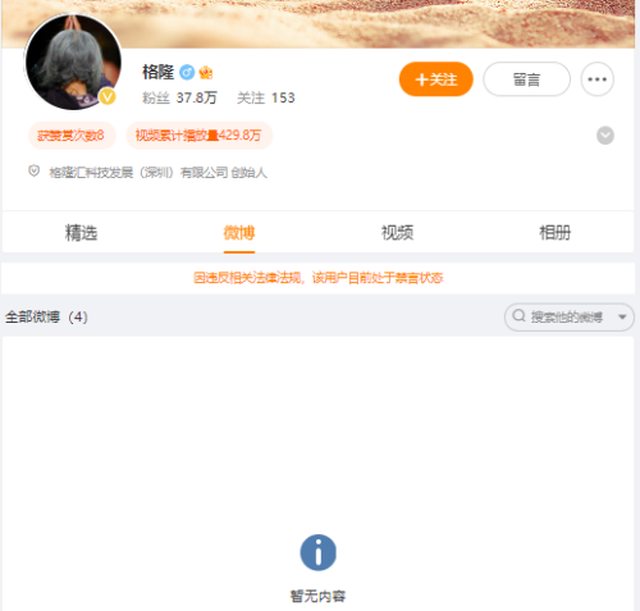 目前,格隆的微博帳戶上的內容已經全部被清空。