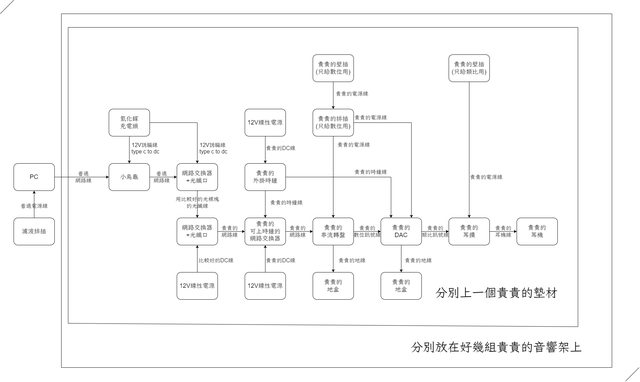 線材跟交換器都可以不需要用號稱音響級或Hifi用的,