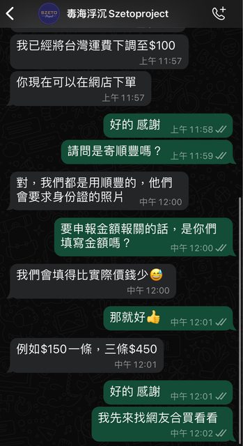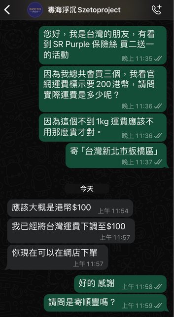 有在經營YT看起來蠻安全的?原本運費是200港幣,後來有跟店家聯絡改成100港幣,附以