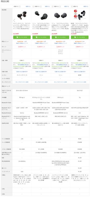 於是便跑去Bic Camera官網用內建的比較功能,加入了個人有聽過的品牌與型號