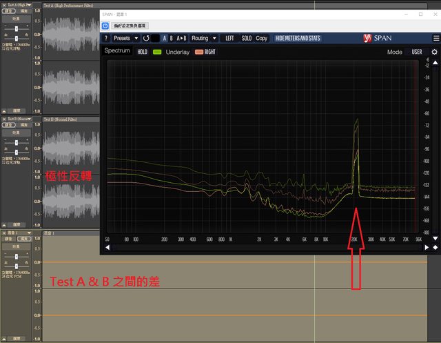 Test B 極性反轉後與 Test A 混合