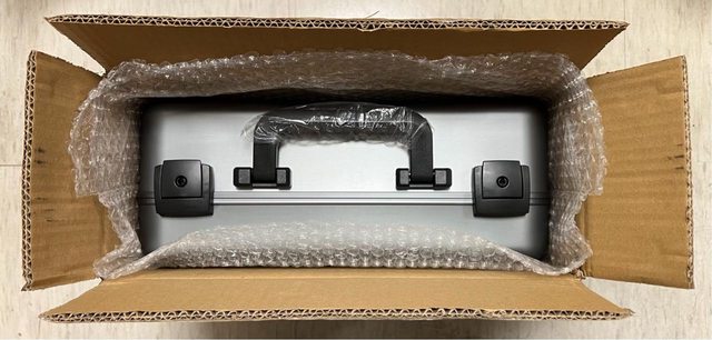 拆開外箱後再拆開內箱,一個鋁合金的手提箱