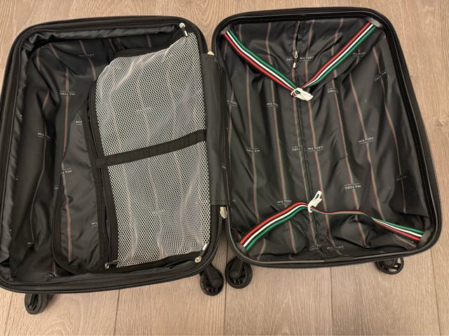 堪用登機箱,有使用痕跡,輪子有脫皮,走起來有聲音,但還算能正常地走。