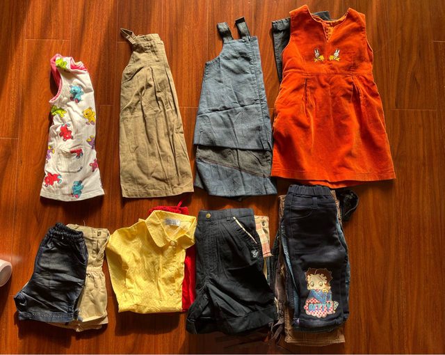 衣服料子不錯,應該是適合2-3歲小朋友,身高90-100左右應該可,有褲有洋裝。