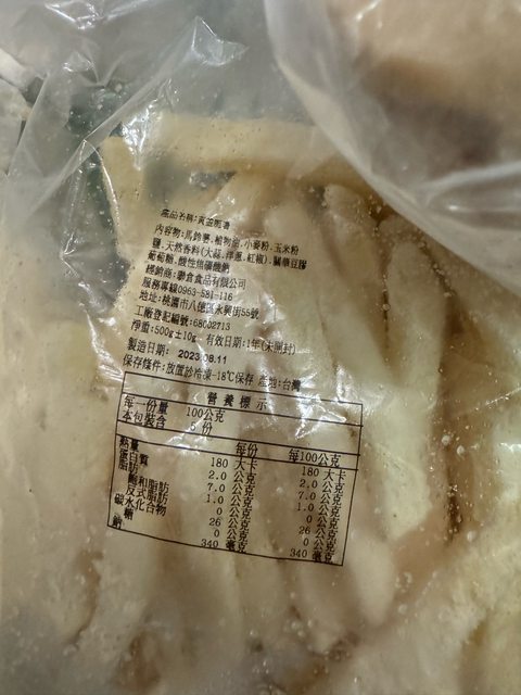 物品項目:冷凍薯條兩包