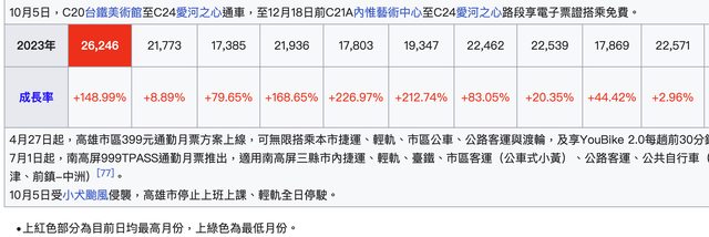 高雄輕軌部分通車後最高記錄2023年1月日均運量突破26000人次[2]