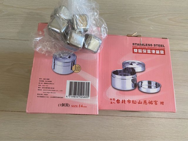 (洽中)不鏽鋼雙層保溫便當盒2個(慈祐宮贈品-未使用過)+不鏽鋼冰塊