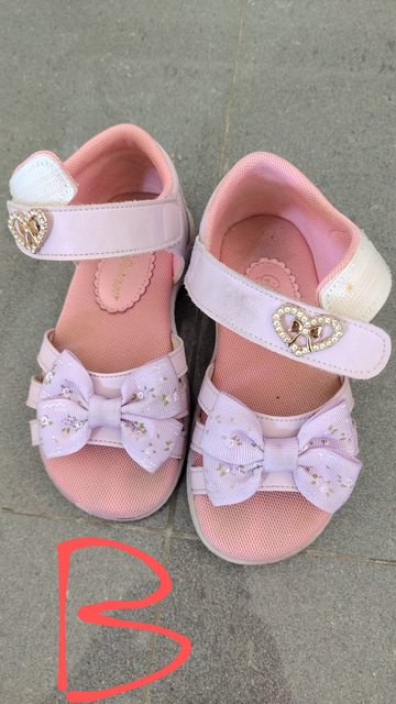 D. 兩雙拖鞋: 3-4歲,如果真的有人需要我再洗刷刷一下 (粉色鞋一隻的帶子斷了)
