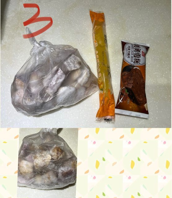 芋頭大概3個月前友人贈送,拿到後一直冰在冷凍庫未拆封過,其中幾塊疑似表皮沒有削很