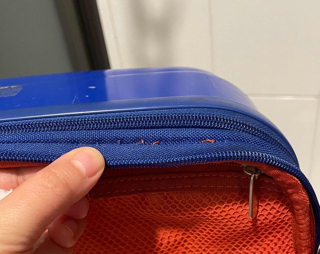 1。輪子完好,內部乾淨,只有拉鍊有稍微脱線裂開