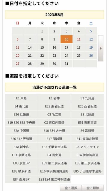 カレンダーから日付を選択し、道路を指定すると、予測されている渋滞情報を検索する