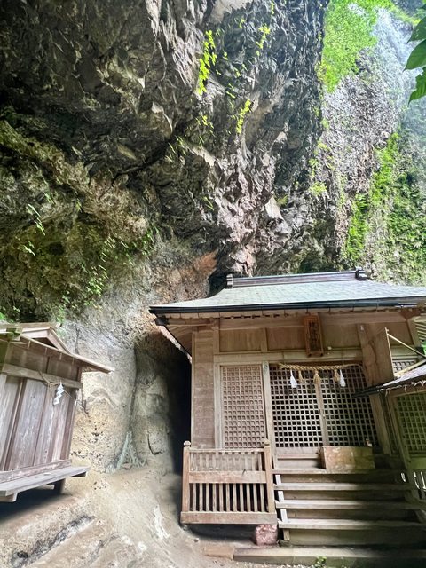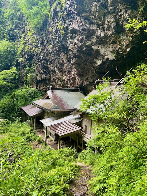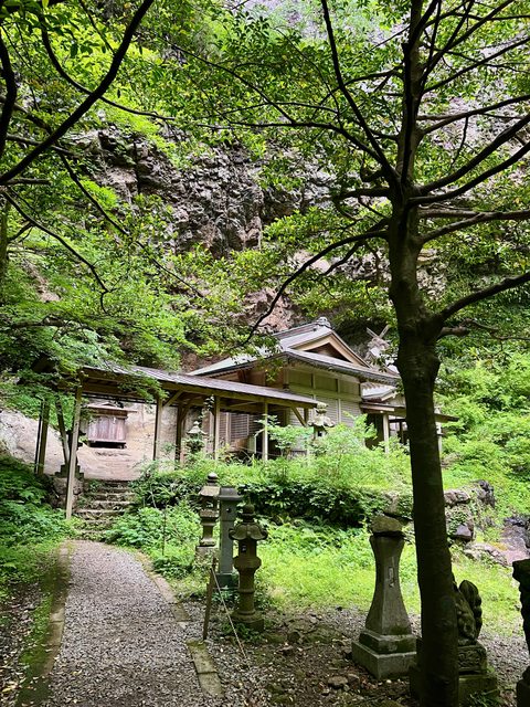 這就是壇鏡神社了。神社蓋在50公尺高的峭壁下,緊鄰壇鏡瀑布,進入此區需自行注意落