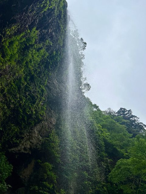 回頭可以注意到,壇鏡瀑布蓋在一個內凹的區域,頂著懸崖峭壁。