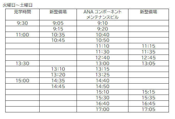 ANA目前每週二到六都有場次可以報名,一天4場,分別為09:30、11:30、13:30、14:00。