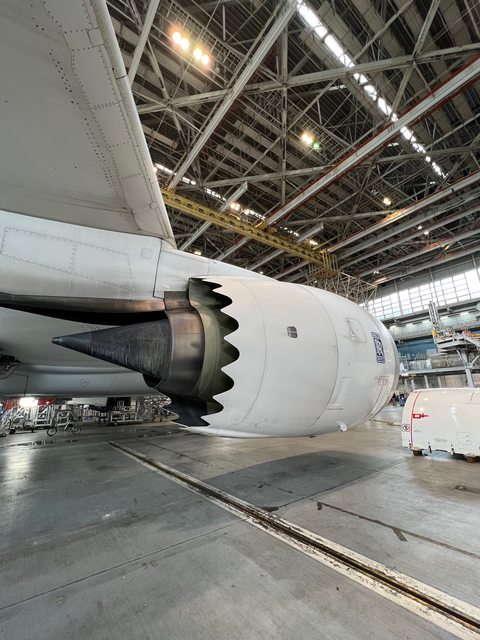 雖然沒看到最大的GE90引擎(直徑3.43公尺),但也夠震撼了。平時在候機室真的無法感