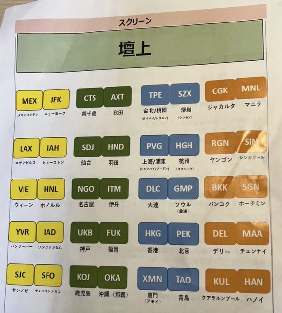 家分成4組,每個座位對應到ANA的一個航點,須按照自己拿到的機場代碼入座。我拿到