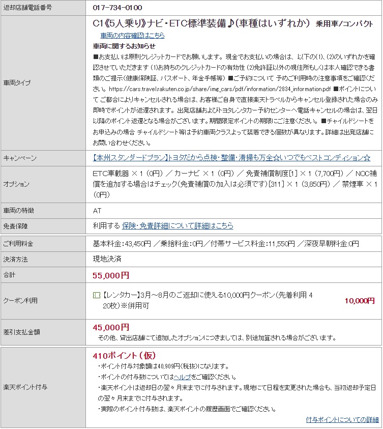 1.東北自駕透過樂天從toyota rent a car租aqua。租車時間7天45000円,油錢約6000円,