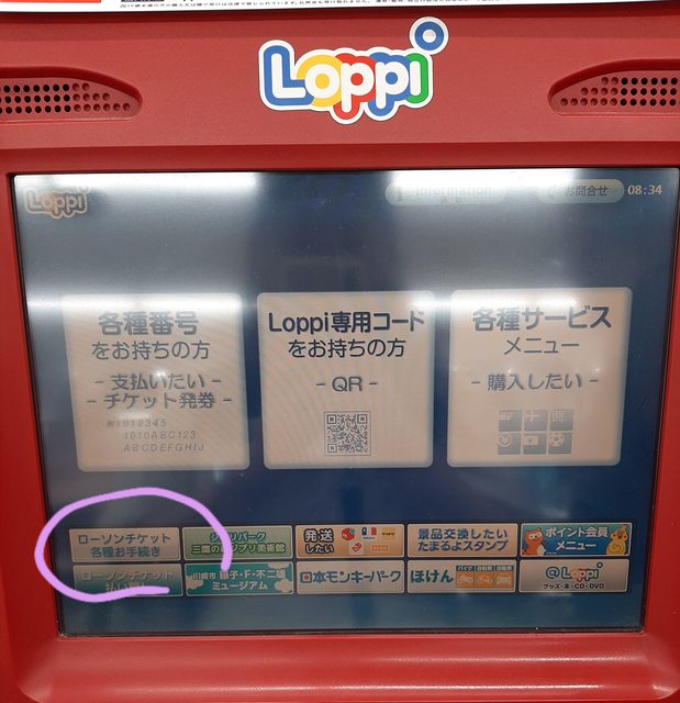 進去後找到loppi機台點一點,輸入購票資料,印出白單後去櫃檯給櫃員換成票券