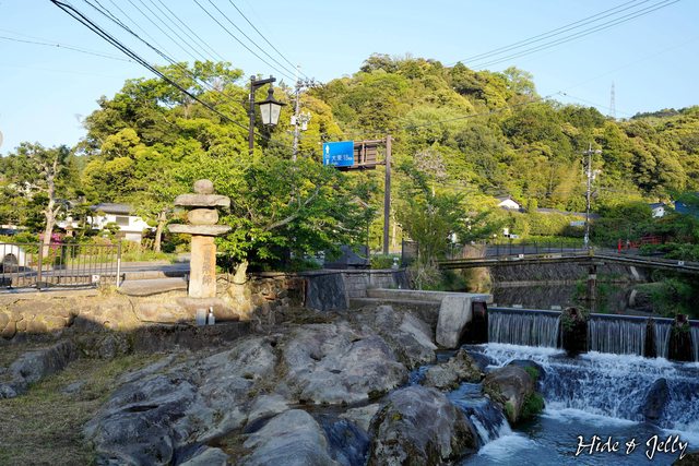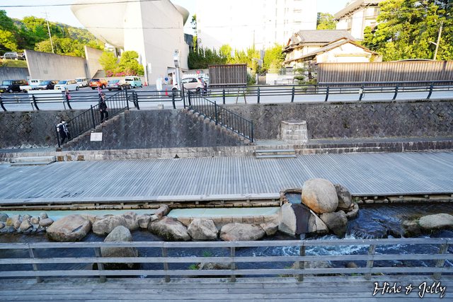 從「湯閼伽の井戸」眺望對岸的川邊出湯跡石燈籠,目前的確已經看不出來當年出湯的痕