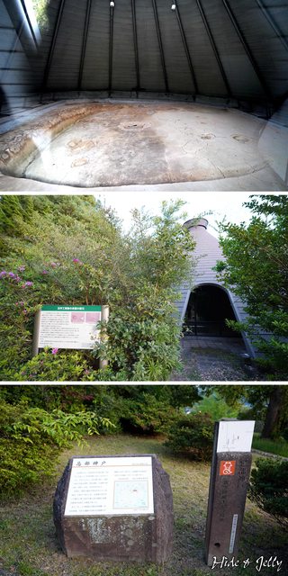 公園內有一個圓形的建築物,裡面是玉作工房的還原展示(中圖),古墳時期的人們在工房