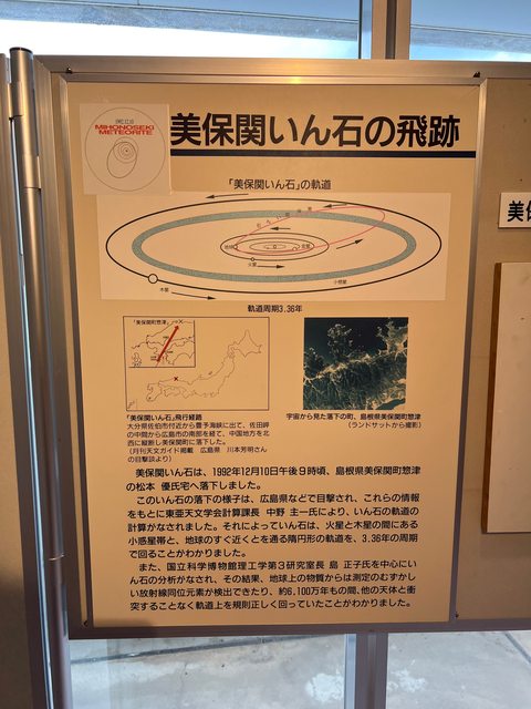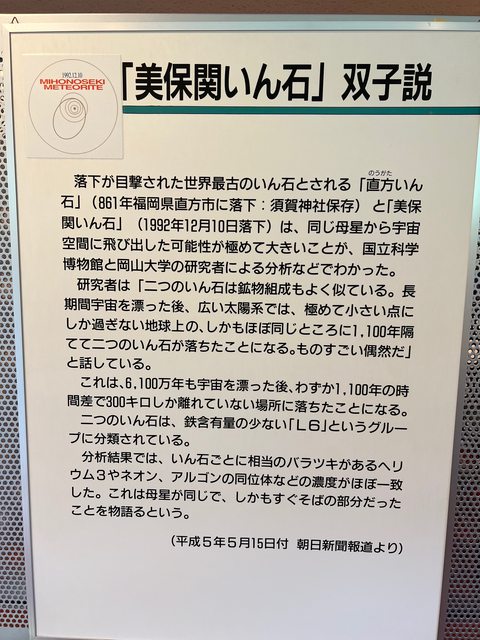 展示廳中還解說了有關隕石的許多知識。比較令人感興趣的是「美保關隕石雙子說」。美