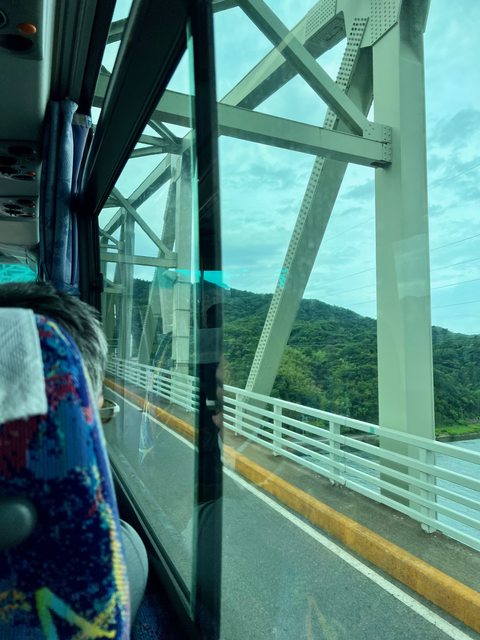 巴士開上陡峭的境水道大橋。這座橋的人行道非常狹窄,大概也不太適合騎自行車,行程