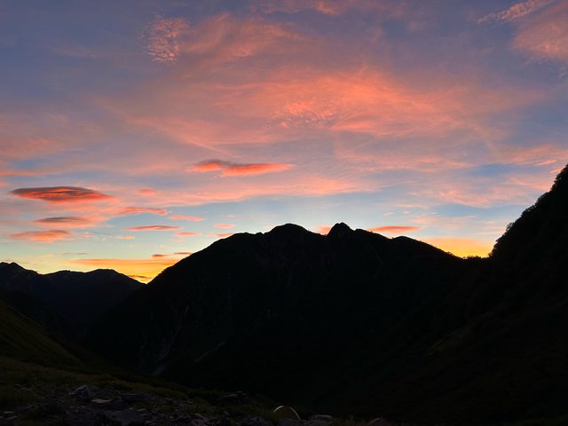 第二天5點輕裝出發攻頂,太陽剛出來時山岳的的朝焼け很漂亮,要是搭配紅葉就更完美