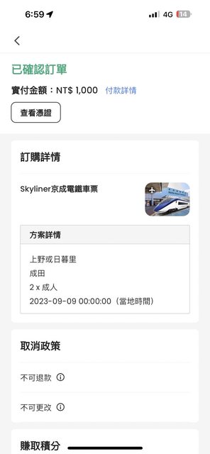 標題[讓售] 9/9上野到成田skyliner便宜讓售2張