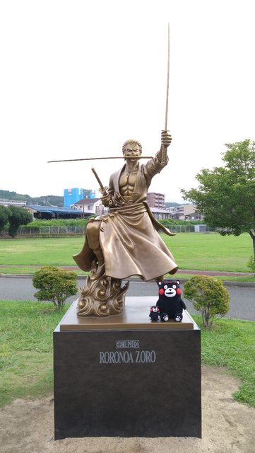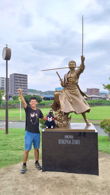 而肥後大津車站不遠的大津中央公園就有索隆銅像!