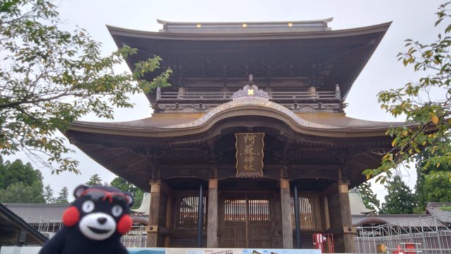 有2500年歷史的阿蘇神社樓門在2016年震垮,拜殿已經修復了,這個樓門即將在12月整修