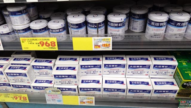 太田胃散210g,台灣賣超過台幣700元,那邊以現在匯率買台幣不到300元。驚人的價差