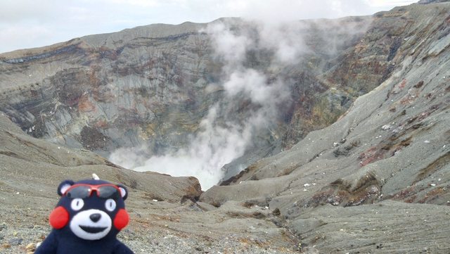 帶著熊本熊和阿蘇火山口合照啦