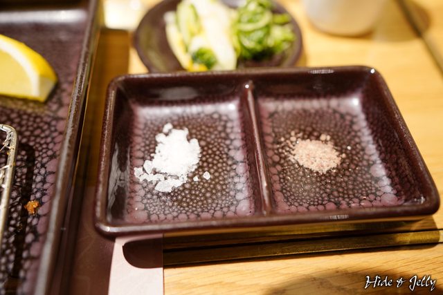 隨著T特選250一起上桌的還有兩種調味鹽,左邊的喜馬拉雅岩鹽、右邊是玫瑰鹽。店員說