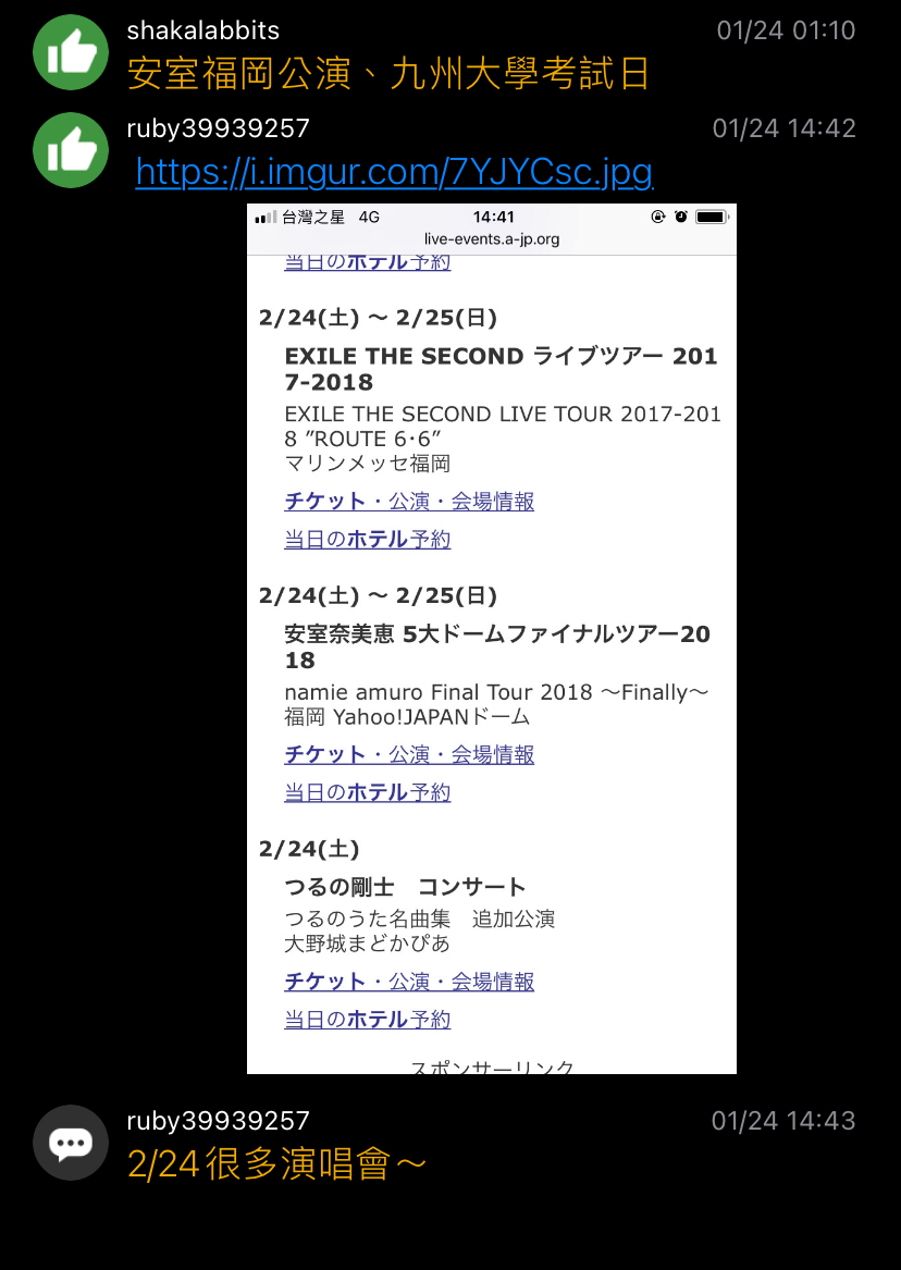→ windsson : 查了一下才發現なにわ男子10/28.29福岡演唱會 09/18 03:23