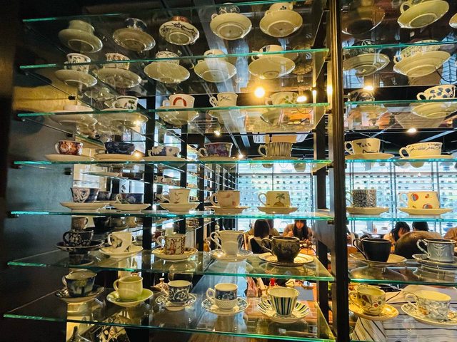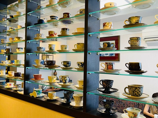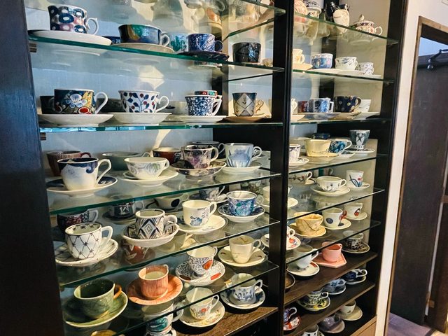 選擇要什麼套餐後,拿著想要喝的飲料牌子在店家展示的將近2千個有田燒咖啡杯裡挑選