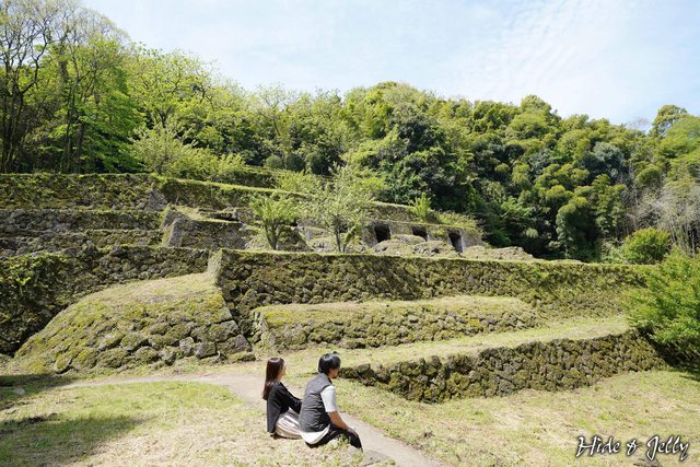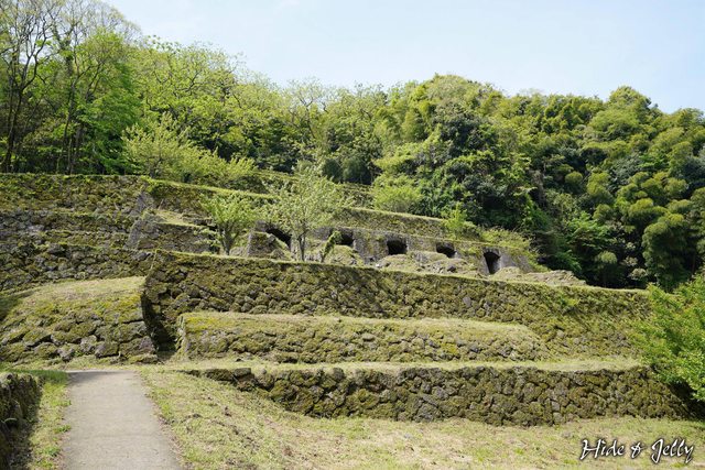 從正面側邊一點的角度,就是石見銀山常現身的經典畫面,數段石垣中,還有通道入口,